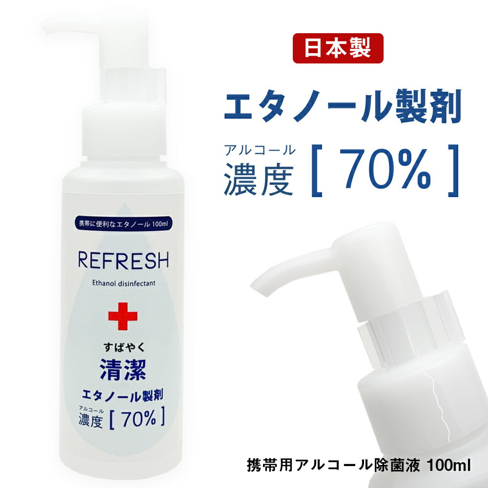 おひとり様2個限り アルコール70%配合 エタノール除菌液 国産 携帯用 スピード除菌 アルコール除菌 手指 手 除菌 ハンド ジェル ウィルス除菌 ウィルス対策 REFRESH 100ml