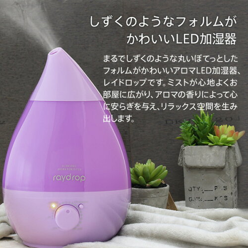 超音波アロマLED加湿器「レイドロップ」 ・まるでしずくのような丸いぽてっとしたフォルムがかわいい アロマLED加湿器「レイドロップ」です。